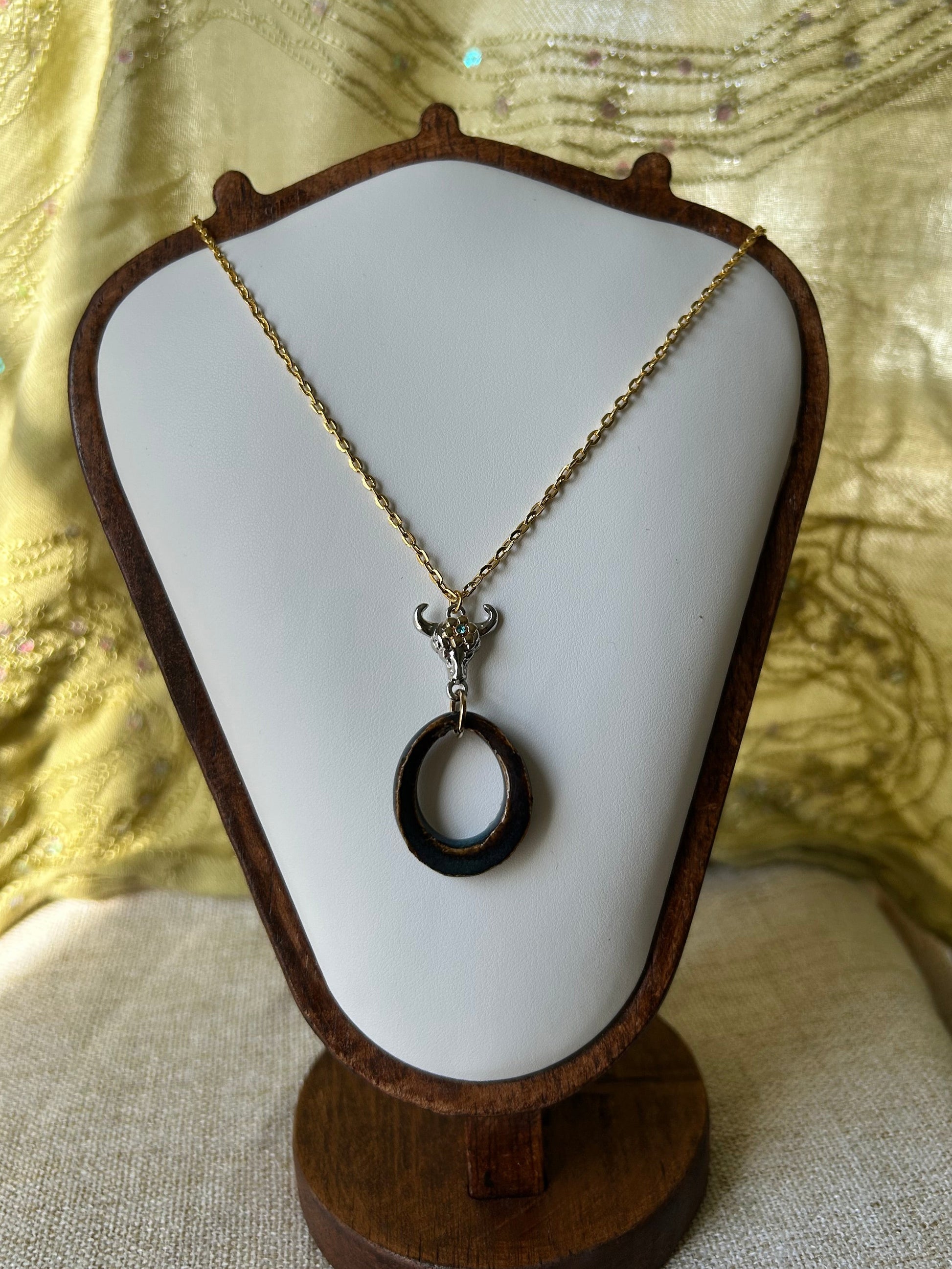 Beautiful lightweight pendant hanging from a simple and playful bulls head charm.