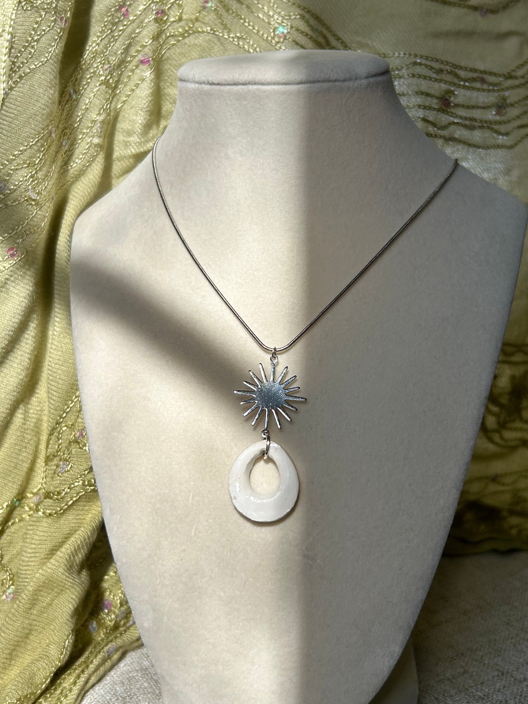 Beautiful and simple white pendant hanging from a dazzling silver star.